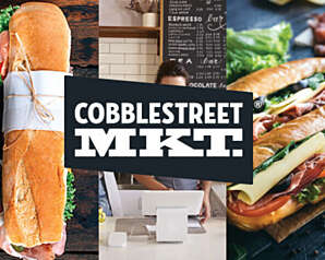 The lights are on at Cobblestreet MKT, hitting the exposed, open air steel and woodblock countertops to throw a spotlight on the freshly carved meats and cheeses that await. Aromas of deli favorites waft from the kitchen and the unbridled basics of yesterday meet the nontraditional twists of today – be it the hearty trappings of a towering sandwich stacker or maybe the artfully layered snackable grab-n-go for those with only moments to spare. From the beautifully-browned roasted meats to the farmhouse and American classic cheeses, and all the accompanying comforts of a classic delicatessen.